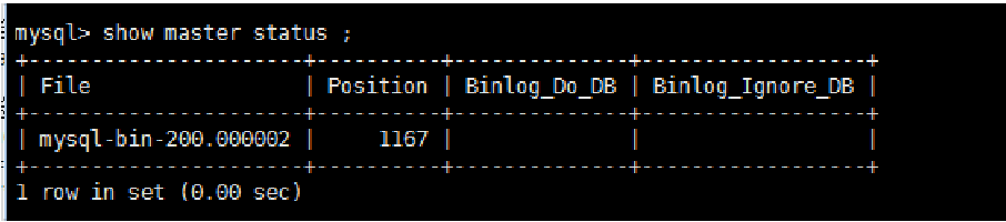 change master to master_host=’192.168.1.200’, master_user=’mark’,master_password=’123456’,master_log_file = ‘mysql-bin-200.000002’,master_log_pos=1167; # 这里是建立与主服务器的连接,master_log_pos需要查看主数据库中position的数值